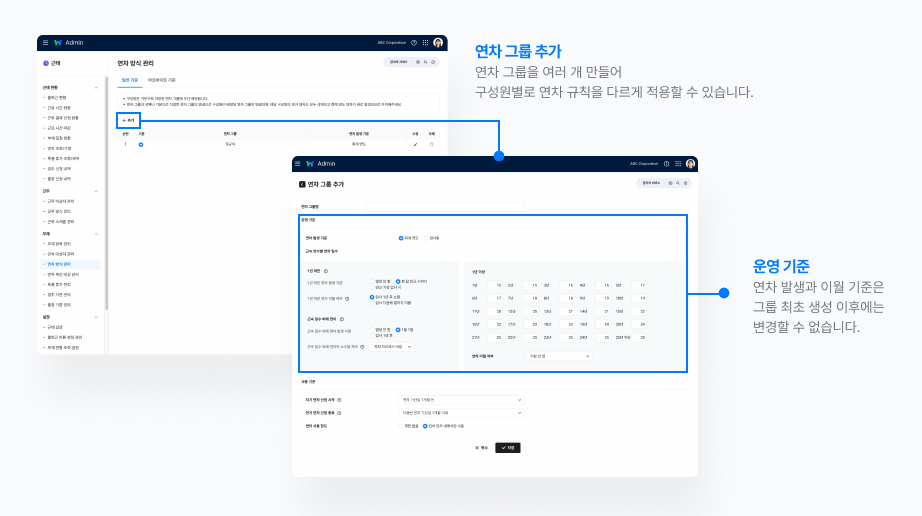 연차는 단순히 근속 기간만으로 계산되는 것이 아니라 연차 그룹 설정과 부재 설정을 모두 고려하여 산정되기 때문이죠. 그래서 설정 하나만 달라져도 연차가 다르게 계산될 수 있어요.
