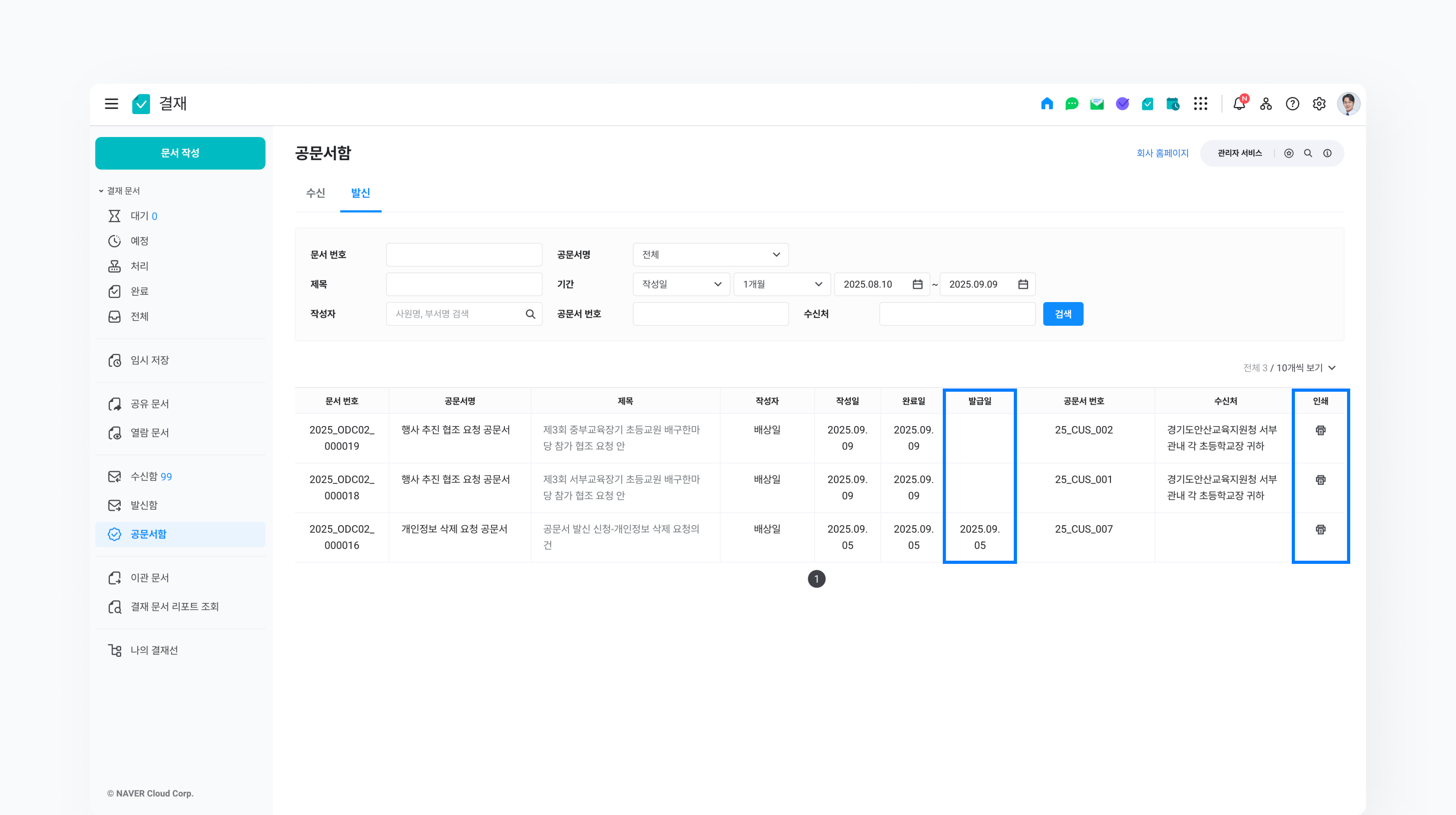 관리자가 해당 공문서를 마지막으로 인쇄한 경우, ‘발급일’이 최종 인쇄일로 변경될 수 있습니다.