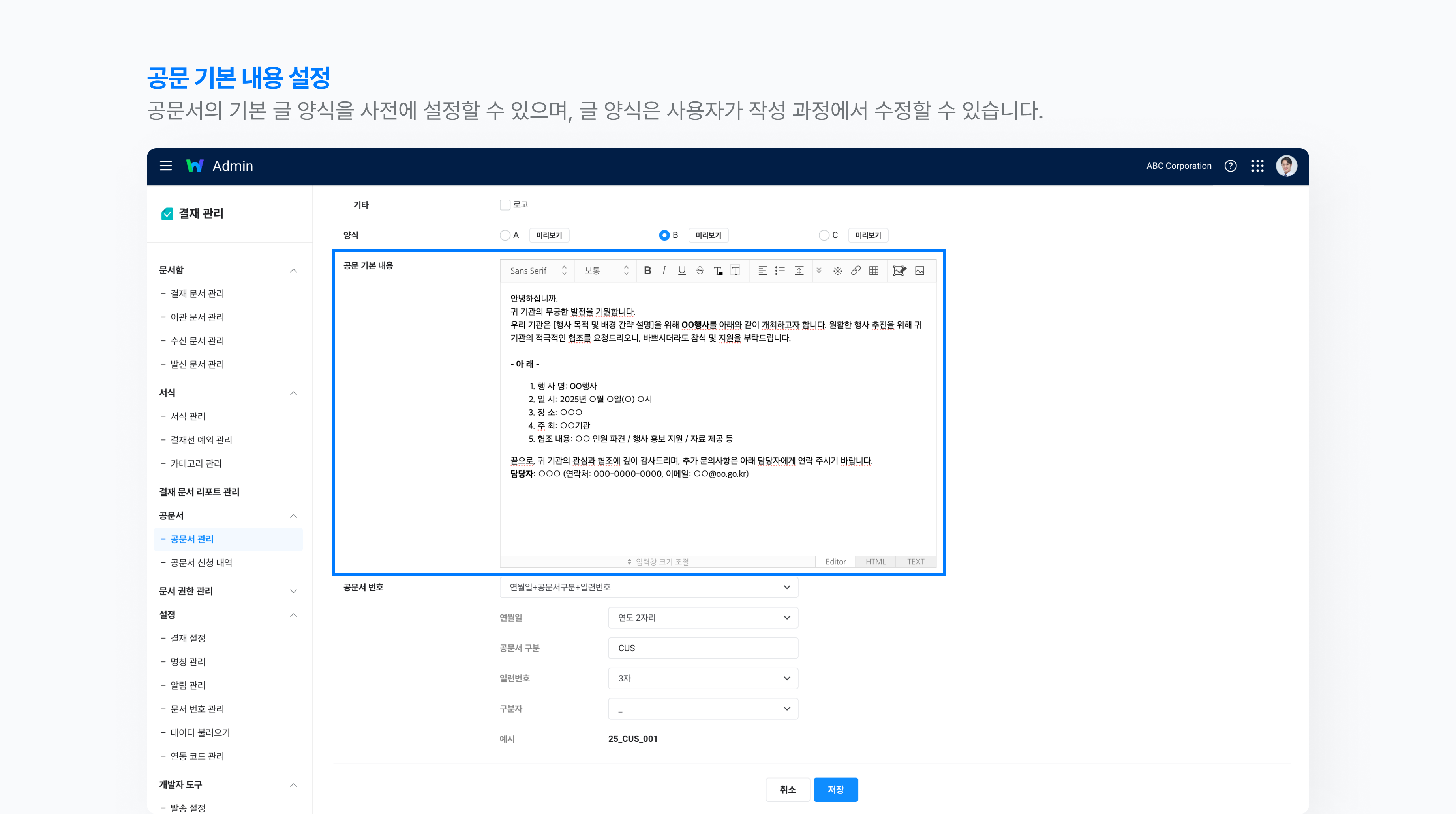 2-5) 공문서 양식 추가 – 저장 후 사용 설정