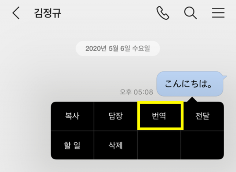 ‘번역’을 탭해서 메시지를 번역합니다.