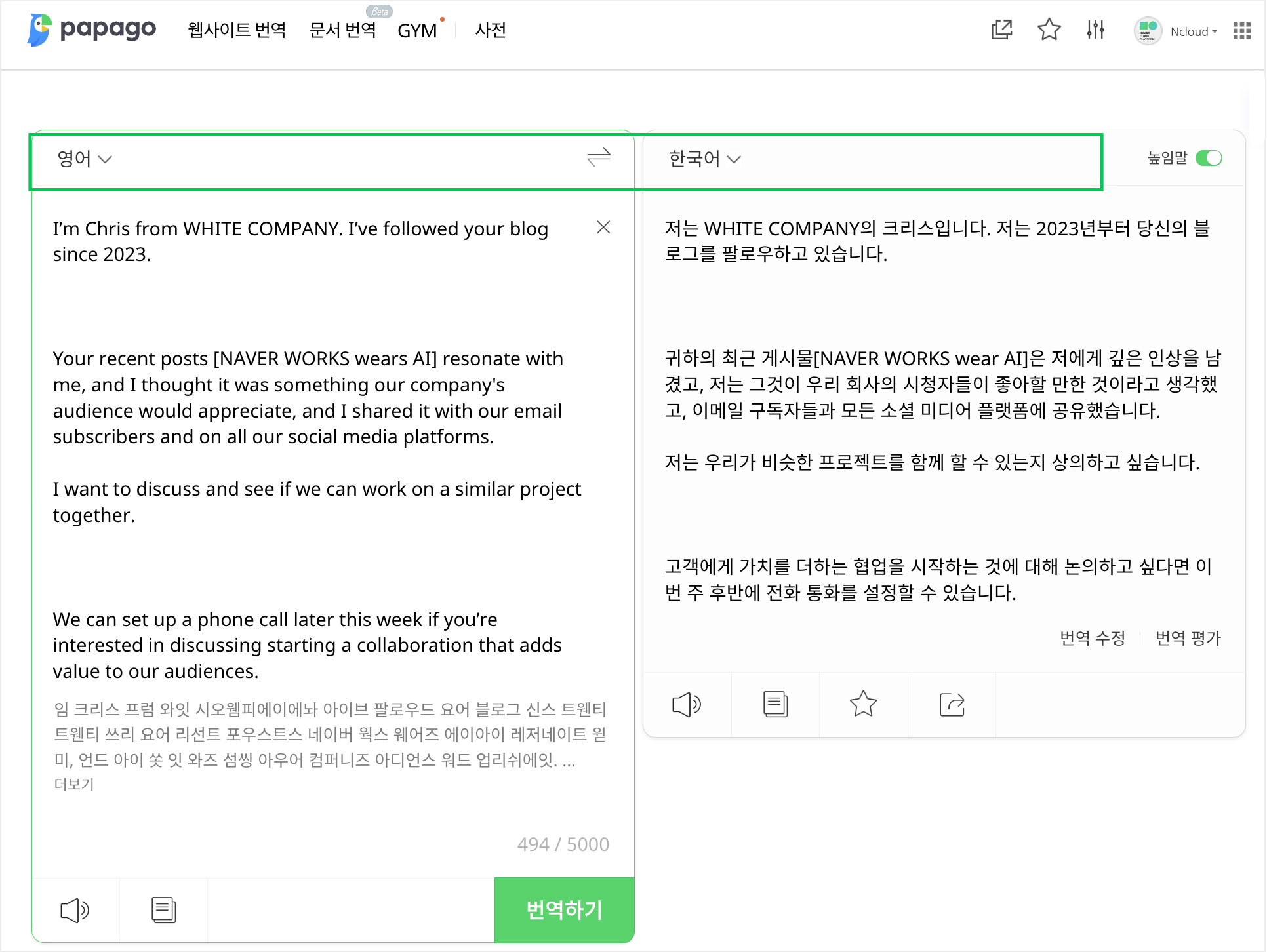 파파고 AI 통번역 기능을 네이버웍스에서 사용하는 방법