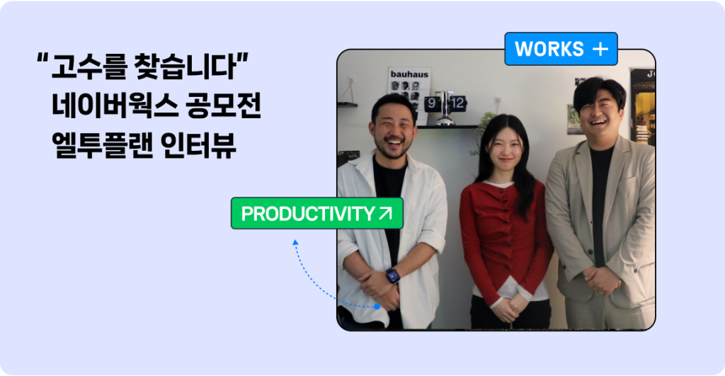 “네이버웍스는 공만 우르르 쫓아다니던 저희 엘투플랜을 체계적으로 만들어준 또 한 명의 팀원이자, 직원들의 빠른 퇴근을 도와주는 팀원입니다.”
