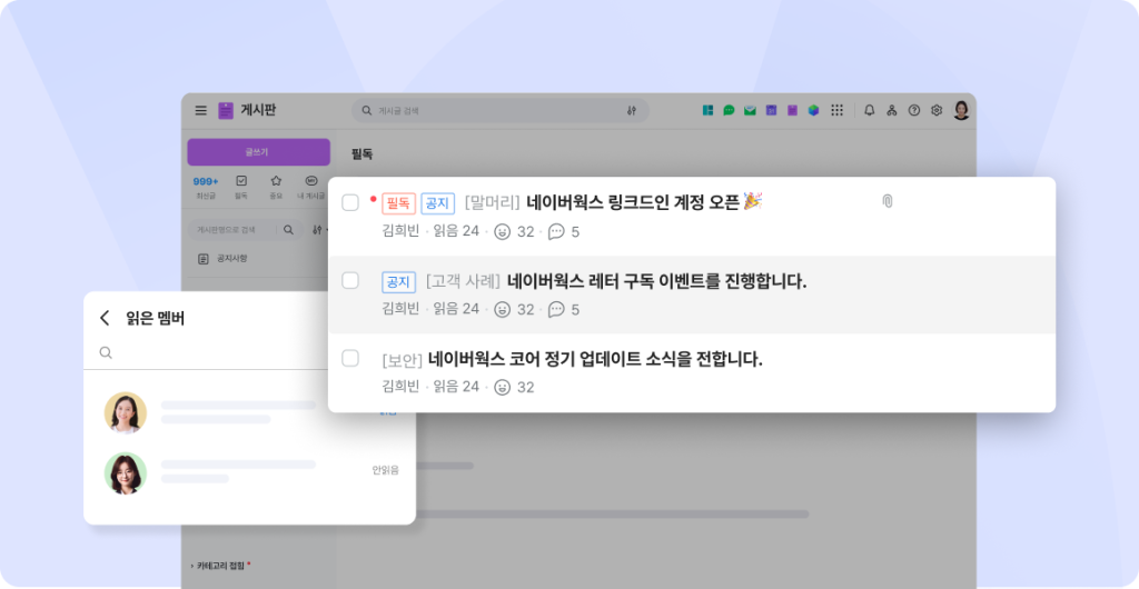 놓치면 안 되는 중요한 공지, 네이버웍스 ‘게시판’으로 더 확실하게 전달해보세요.