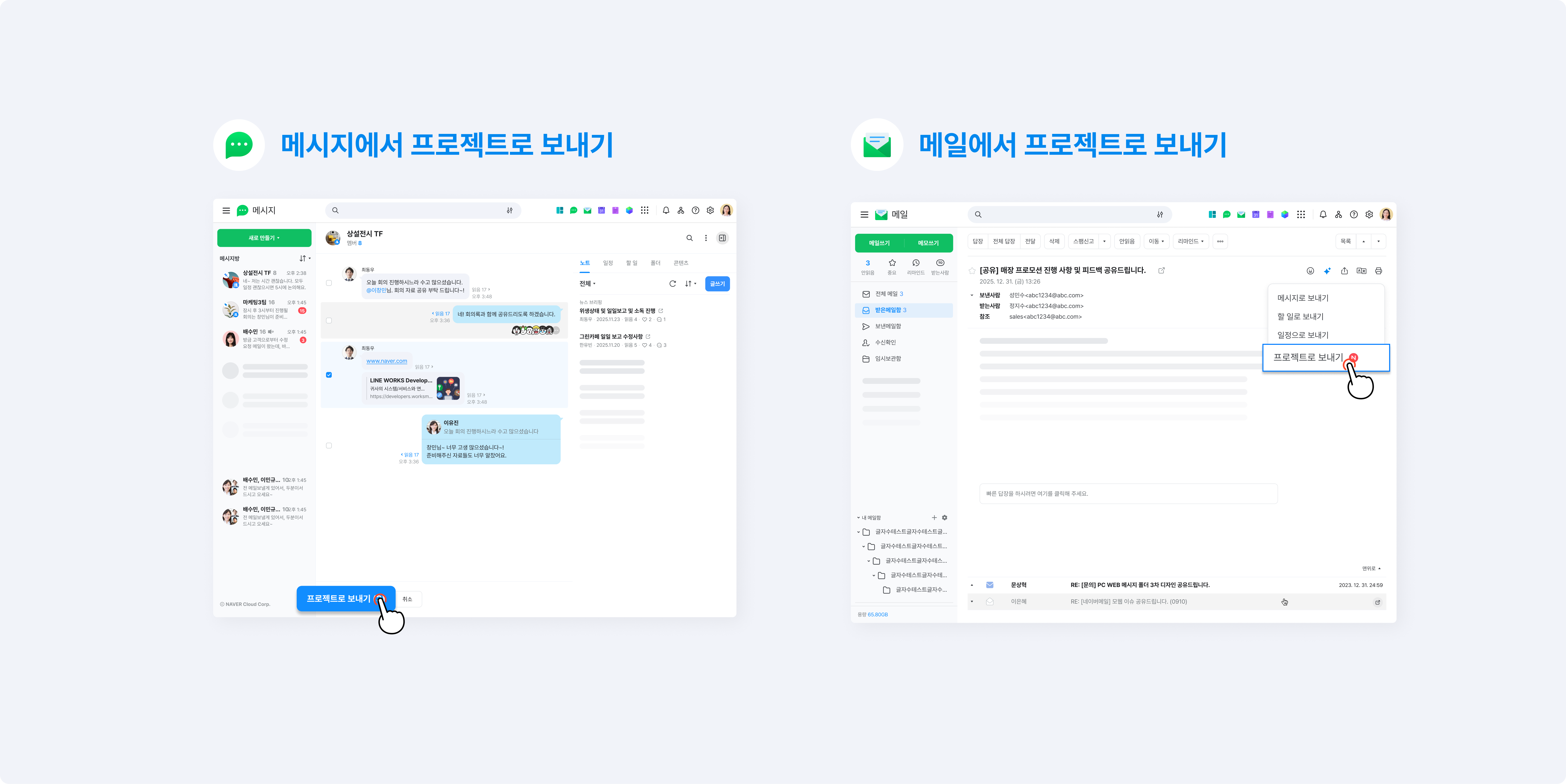 3. 네이버웍스 메시지와 메일에서 프로젝트로 보내기