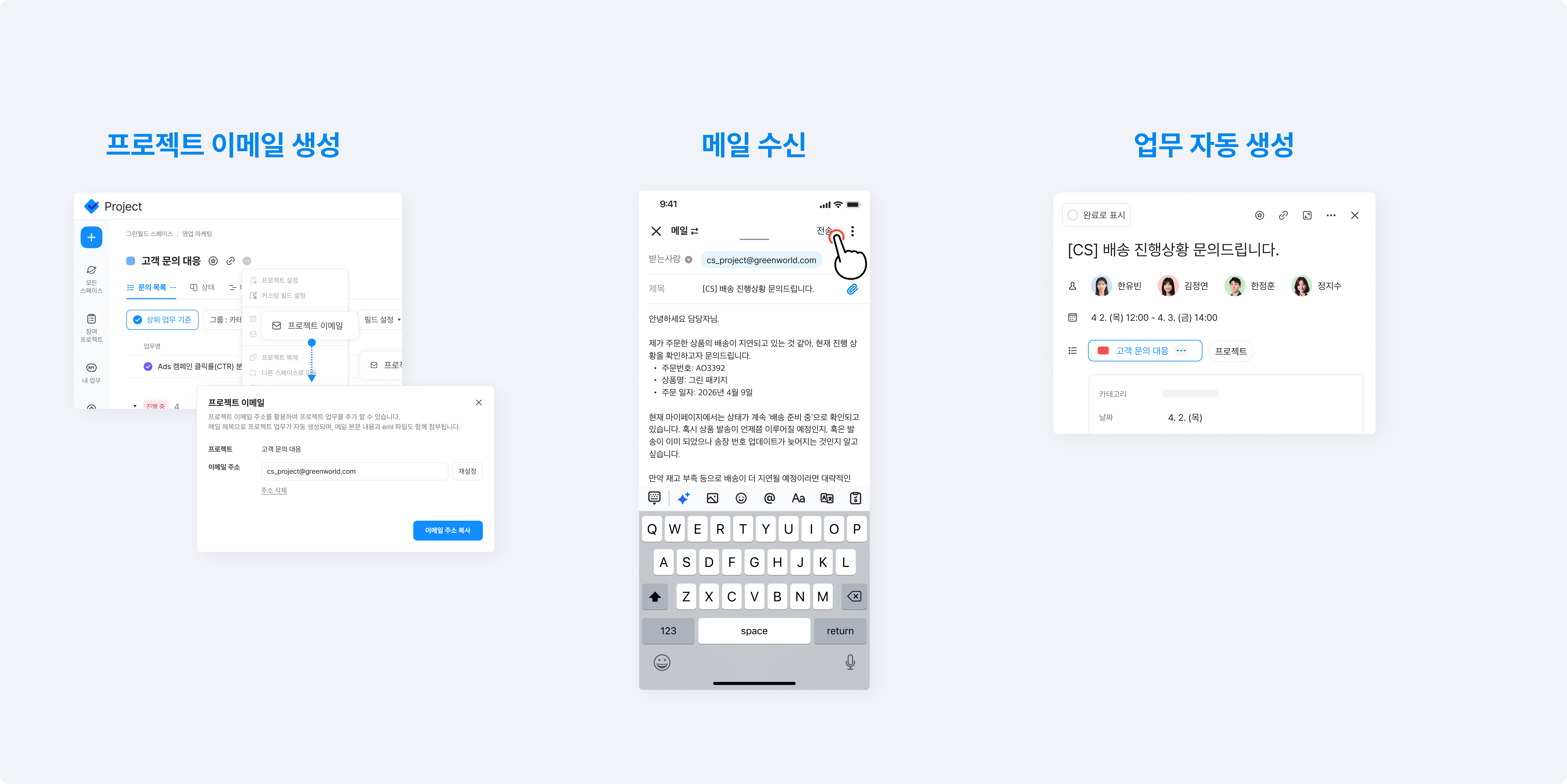 - 프로젝트마다 전용 이메일 주소를 만들 수 있습니다.