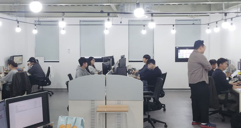 매일 아침 당일 주요 업무를 공유하며 업무를 시작합니다. 저희 사무실과 연구실은 3층에, 물류창고는 1층에, 교육 공간은 12층에 있는데, 업무시설 간 이동으로 인해 소모되는 시간을 효율적으로 활용하기 위해 대부분의 업무는 네이버웍스로 공유하는 것을 규칙으로 만들었습니다. 직접 확인이 필요한 물류 현황 등 업무는 화상 회의로 실시간 공유하고 함께 검토할 수 있습니다.