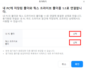 2) 동기화 할 내 PC의 폴더와 웍스 드라이브 폴더를 선택하여 각각 설정한 후 “확인”버튼을 선택