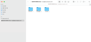 업데이트 이후에는 Mac의 Finder에서 ‘NAVER WORKS Drive’를 열면, 기존에 선택했던 동기화 폴더뿐 아니라 PC웹 드라이브에서 보이던 모든 파일과 폴더를 한눈에 확인하실 수 있습니다.