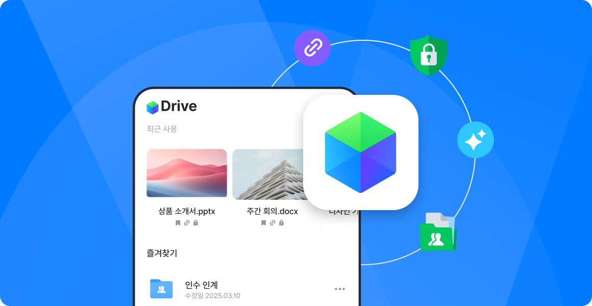 네이버웍스는 메일, 메시지, 캘린더, 드라이브와 같은 핵심 협업 기능은 물론, 결재, 근태와 같은 경영 지원 기능까지 모두 유기적으로 연결되어 있어요.