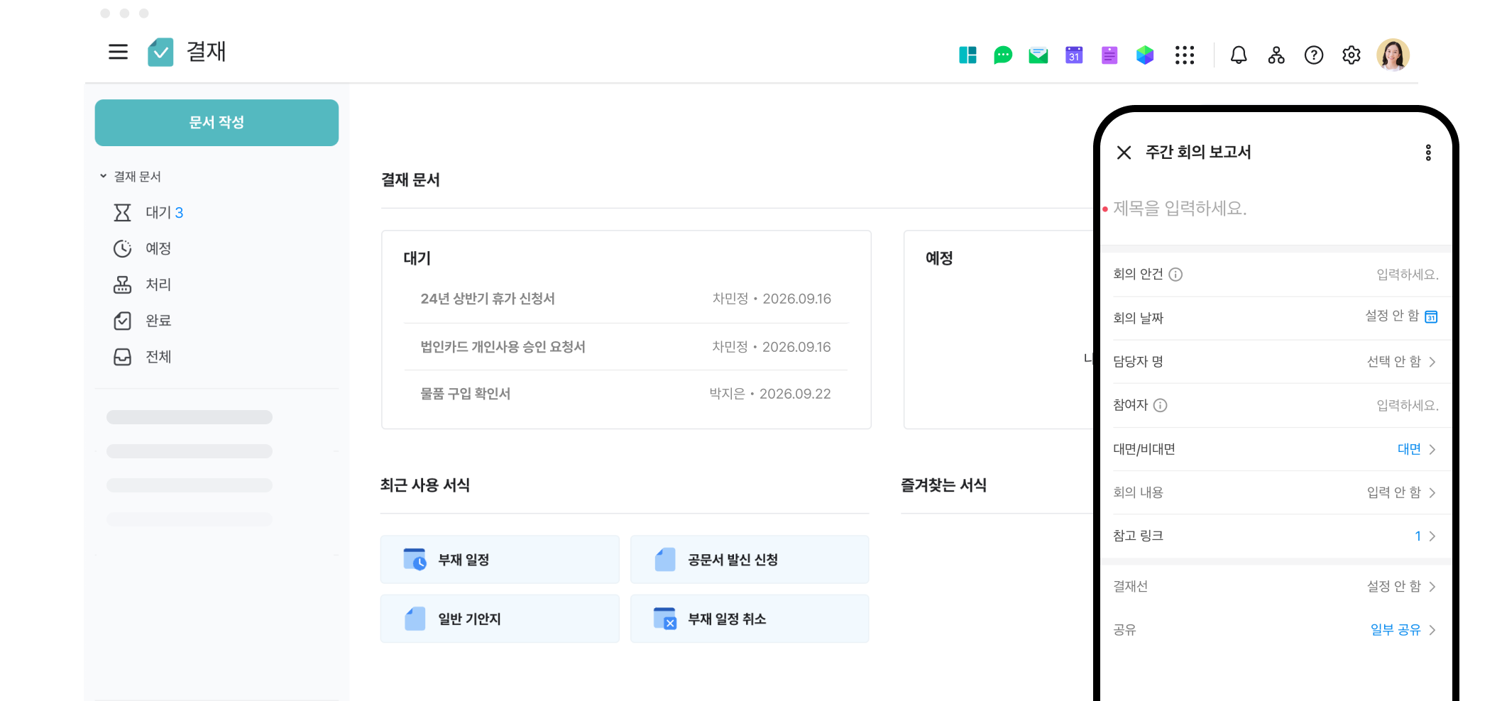 모바일에서도 동일하게 결재할 수 있어 의사결정의 속도를 높일 수 있어요.