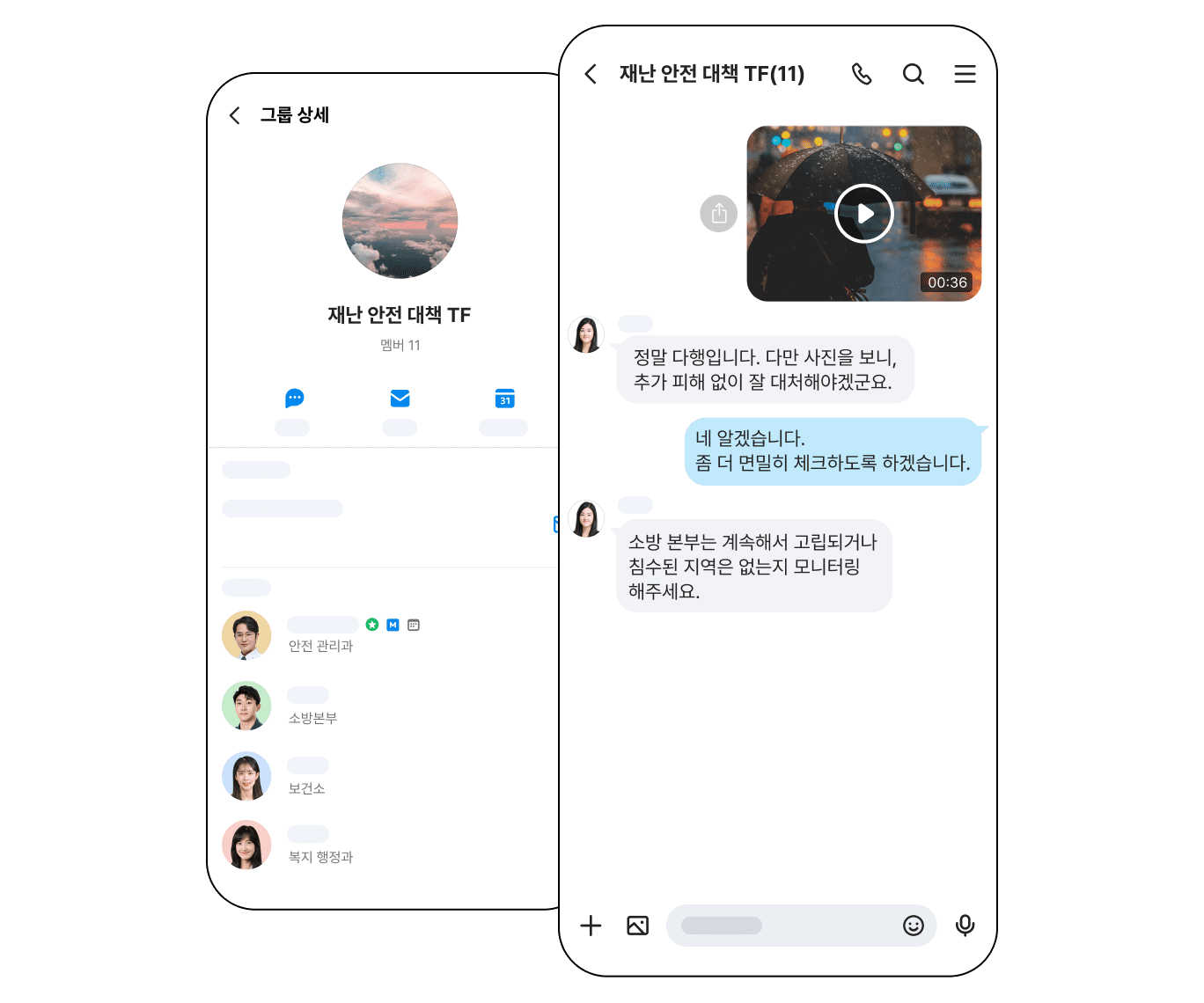 TF 단위로 그룹 메시지방을 만들어 유관 부서가 모두 포함된 공간에서 긴밀하게 커뮤니케이션 할 수 있습니다.
