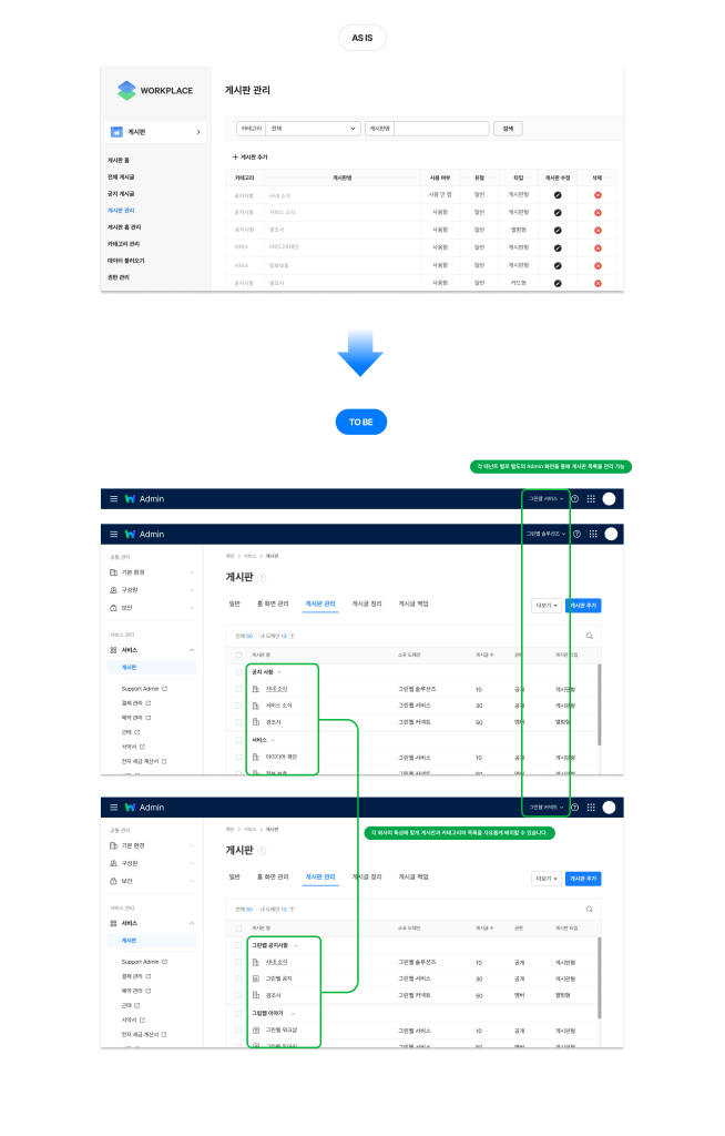 - 기존 WORKPLACE 게시판 및 카테고리 관리